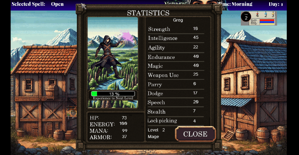 - Equippable inventory system with bonus stats on armor, weapons and jewelry